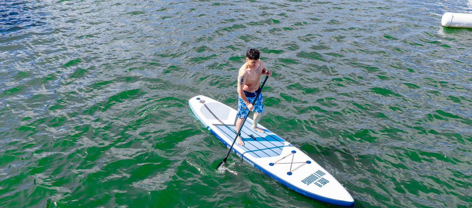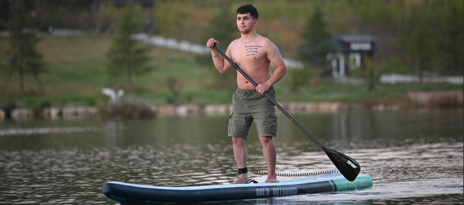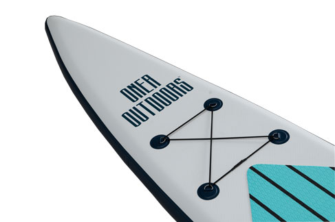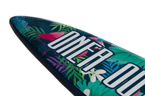 A prancha de corrida é feita de material tecido reforçado, que é mais leve e rígido do que os materiais comuns de ponto de gota, tornando-a a escolha ideal para entusiastas de pranchas de corrida. Suas nadadeiras também são mais resistentes e feitas de um material melhor do que as das pranchas comuns, permitindo maior velocidade na água e ajudando os corredores a superar obstáculos. A impressão vibrante no verso torna sua prancha ainda mais atraente na água.