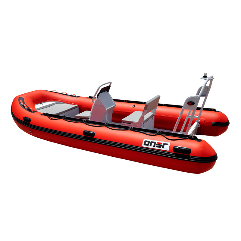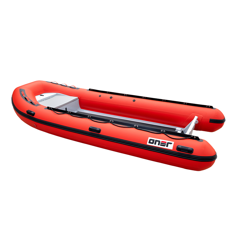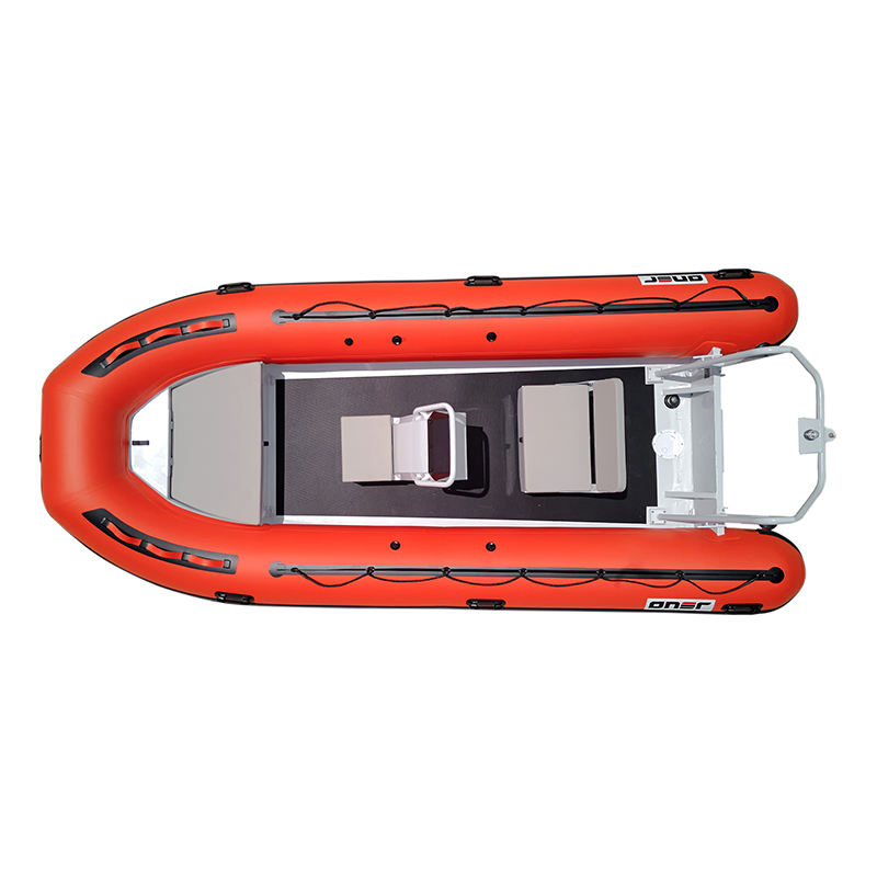 O barco de resgate laranja resistente ONER tem largura interna de 105 cm e largura total de 205 cm. Sua ampla largura interna oferece bastante espaço útil dentro da cabine, acomodando de 9 a 10 pessoas com capacidade de carga máxima de 920kg, atendendo perfeitamente aos requisitos de alta carga de resgate na água. A liga de alumínio com 4 mm de espessura garante a rigidez e resistência do casco. Possui uma cabine dianteira onde você pode armazenar itens. Para este modelo, os usuários podem escolher painéis de controle, assentos e barbatana traseira adequados, combinados com um motor de 40 cv (29,82 kW), para explorar a diversão da recreação aquática.
