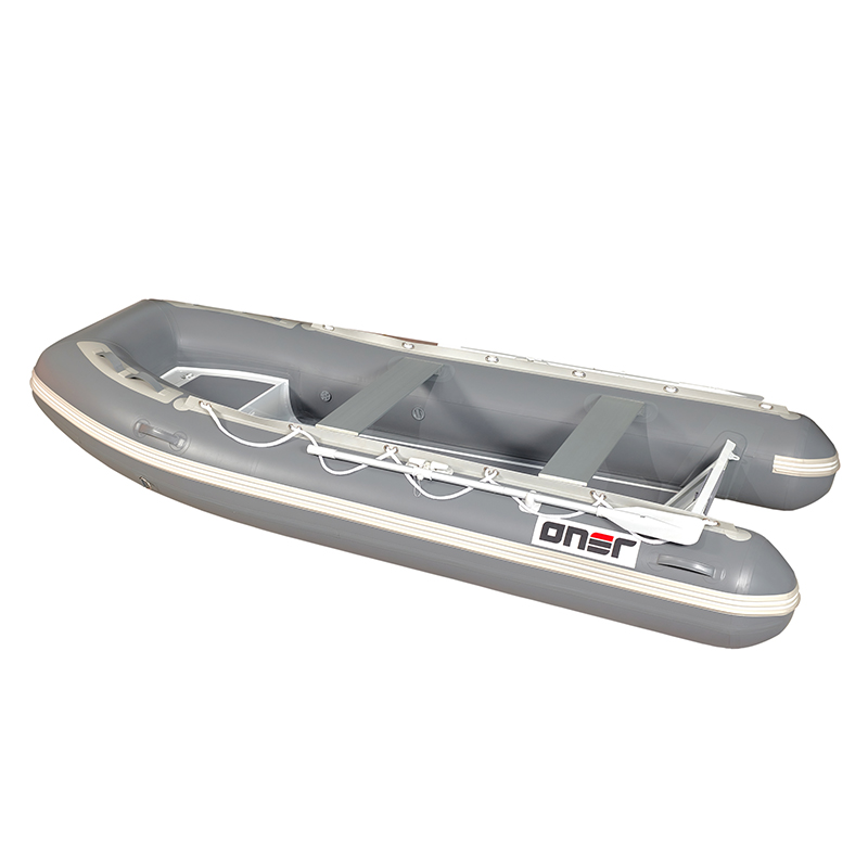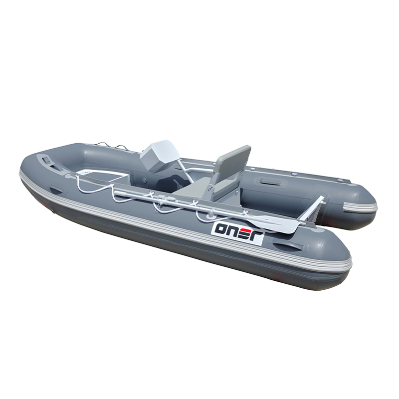 ONER RIB de alumínio para serviços pesados é um barco RIB de dois andares com uma estrutura de liga de alumínio de 3 mm de espessura. Possui um compartimento de armazenamento dianteiro na proa, adequado para guardar equipamentos de pesca. Devido à sua estrutura de casco duplo apoiada na quilha, o espaço interior é significativamente maior do que um RIB de casco simples. Materiais de PVC ou Hypalon resistentes à corrosão, resistentes a UV e resistentes a altas temperaturas garantem uma longa vida útil. Alças amplas acomodam vários passageiros e, com um motor de popa adequado, faça seu amado barco navegar pelo vasto oceano!