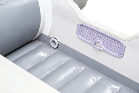 1. O casco de baixa pressão, com a mesma pressão de ar dos pontões, permite uma rápida inflação do casco.