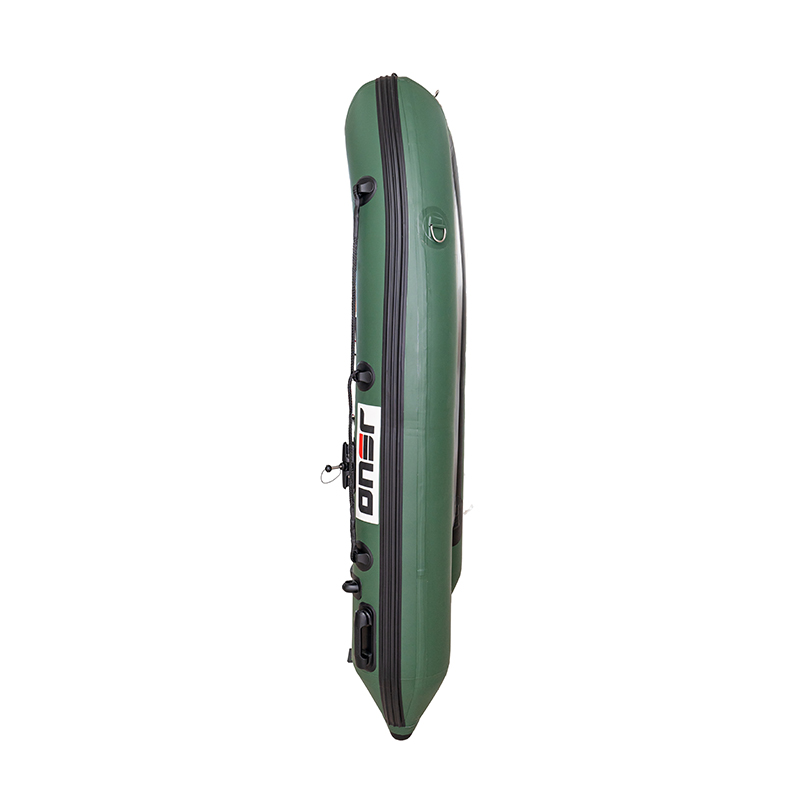 O barco inflável com fundo de ripas é um barco inflável de PVC extremamente leve, tornando-o muito conveniente para mover e transportar. A estrutura inferior utiliza vigas de fibra de carbono espaçadas para aumentar a rigidez e estabilidade do barco; sua resistência à corrosão e tenacidade superam em muito as das pranchas de madeira comuns.